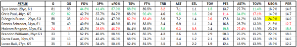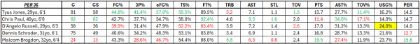 RE: MAVS NEWS: - Chicagojk - 06-25-2025 With the Kyrie resign Dallas has the tax level MLE and can also aggregate salaries for a trade. Which of these two do you think are more important to the team? RE: MAVS NEWS: - DanSchwartzgan - 06-25-2025 (06-25-2025, 06:34 AM)Chicagojk Wrote: With the Kyrie resign Dallas has the tax level MLE and can also aggregate salaries for a trade. Which of these two do you think are more important to the team? Nothing is off the table. Every thing we've talked about...trade for picks, trade for players (big ones like Jrue and small ones like Lonzo) are still on the table. The math works out that not trading anyone and just signing someone to the Taxpayer MLE appears to fit. But, it was always going to be that way if Kyrie did what so many expected. The position we are in means we aren't dependent upon the kindness of another team to fill the roster. We are dependent on a free agent to take our money, but that shouldn't be too hard. To answer your question, I hope it is the latter. I'm not infatuated with any of the FA guards out there. The roster is unbalanced and signing a single fill-in guard doesn't do it for me. I hope our financial position lets us negotiate out of strength. The news about Kai Jones is encouraging. I like his upside if his head is right. It means something else may happen. Maybe a two for one? Since we have to send more than we take back, a two for one requires that we send $2.3mm more than we take back so that we can fill the open slot (presumably with Jones). It has been reported that we want to get into the draft again. Maybe its a three for one with a player and a pick coming back (and Jones to fill the last spot created by the imbalanced trade). I can even see scenarios where we get under the first apron. Like I said, nothing we've talked about is off the table in terms of concept. Gafford to Atlanta for 11 is gone, but even a Jrue trade is still possible. RE: MAVS NEWS: - Chicagojk - 06-25-2025 (06-25-2025, 06:58 AM)DanSchwartzgan Wrote: Nothing is off the table. Every thing we've talked about...trade for picks, trade for players (big ones like Jrue and small ones like Lonzo) are still on the table. The math works out that not trading anyone and just signing someone to the Taxpayer MLE appears to fit. But, it was always going to be that way if Kyrie did what so many expected. The position we are in means we aren't dependent upon the kindness of another team to fill the roster. We are dependent on a free agent to take our money, but that shouldn't be too hard. As far as a trade, I have difficultly to believe we can get a late first. There was a rumor that Martin could attract a late first. I have difficulty believing that. On a different note, he is sort of the odd man out right? I think, if healthy, his skill could be used, but there are just too many bodies it appears. Powell has 4 million left and Omax has a year left. Could you trade both for someone who has two years left on his contract? It is not much, but maybe one of the bottom teams just wants to clear a few more million for next year? Is that possible? Omax is still hurt, so he can't play yet. Hardy could be an option as well. 6 million for two years is not ideal though. RE: MAVS NEWS: - Smitty - 06-25-2025 I did a quick comparison of the FA point guards mentioned. I added Tyus Jones myself. The Per 36 numbers for each player from last season. I didn't dig deep or try to manipulate the numbers by pulling averages over the last 2-3 seasons or whatever. Just black and white numbers from the most recent season for comparisons sake. Anything stand out or concern you more than others? RE: MAVS NEWS: - Winter - 06-25-2025 All sort of stats here may be one-offs. Chris Paul played 82 games. Do we think that will happen again? Malcolm Brogden had his worse season ever (by far) but it was with the Wizards and recovering from injury Tyus Jones and Schroeder are probably the most reliable projections statistically (although Tyus Jones defensive rating went way down in Phoenix) Also: "The Kings are viewed as a leading suitor for free agent point guard Dennis Schröder, according to league sources who have spoken to Jake Fischer of The Stein Line (Substack link)." RE: MAVS NEWS: - Smitty - 06-25-2025 (06-25-2025, 07:30 AM)Winter Wrote: All sort of stats here may be one-offs. I'd argue that Jones, Russell, and Brogdon all had the worst season of their careers. Still, some of what they can provide would be a fit here. The highest upside move in my opinion would be Russell. If he can get back to what he was doing a year ago, while buying in on defense, he could change his public perception in a big way. Next for me would be Jones. He was a terrible fit in Pheonix. I think he'd fit like a glove here. I think he's a minimum guy again with another prove it year ahead of him. He can shoot the 3 ball and is a Duke guy, so... The safest bet is CP3, although I don't expect him to play 82 games again. RE: MAVS NEWS: - DanSchwartzgan - 06-25-2025 (06-25-2025, 07:22 AM)Smitty Wrote: I did a quick comparison of the FA point guards mentioned. I added Tyus Jones myself. The Per 36 numbers for each player from last season. Thanks for the graph. Any chance you could add BWill and Exum for comparison? Lonzo? RE: MAVS NEWS: - Smitty - 06-25-2025 (06-25-2025, 07:53 AM)DanSchwartzgan Wrote: Thanks for the graph. Any chance you could add BWill and Exum for comparison? Lonzo? RE: MAVS NEWS: - F Gump - 06-25-2025 (06-25-2025, 12:47 AM)Mavs2021 Wrote: 1 A potential trade of Hardy, Powell, Martin gets you to Sexton. 1 The Mavs have apparently decided (and rightly so, imo) that the hit to their limited payroll for filling the role of temp PG starter needs to be 6M, not 20M. Personally, I believe they will get just as much utility from the 6M guy, but in any event, that's what's in their budget. You only have so much payroll to go around. 2 In this draft, there are wayyyyyyyyyyyyyyyyy more efficient ways to get a