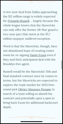 MAVS NEWS: - Printable Version +- MavsBoard (https://www.mavsboard.com) +-- Forum: Boards (https://www.mavsboard.com/forumdisplay.php?fid=1) +--- Forum: Dallas Mavericks and the NBA (https://www.mavsboard.com/forumdisplay.php?fid=2) +--- Thread: MAVS NEWS: (/showthread.php?tid=2172) Pages: